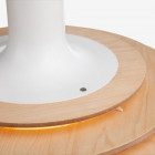 Produced from half a sheet of plywood the layering creates a soft diffused horizontal light, as well as a down light. A low energy bulb is a white light and this is softened and rendered more natural in colour by its reflection off the wood, almost like an old school incandescent glow. At certain angles the light effect is almost like a moiré pattern.