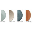 Manufactured in two different grey finishes as well as off-white and (new for 2013) a terracotta finish, each concrete shade is individually slip-cast and left inverted in the mould to dry for a number of days. During this process, random air pockets and veining develop on the interior of the shade.These markings vary from one shade to the next and create unique and irregular marble- like patterns, which contrast with the shade’s smooth exterior.