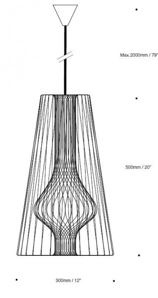 A deceptively simple array of wire profiles creates the illusion of a twisted inner core at the centre of Wire Light. These concentric loops produce two layers: the inner layer that interrupts and softens light emanating from the lamp, and the outer layer, that defines its decorative form.