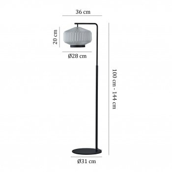 | Dimensions: | Shade: Ø28cm Shade Height: 20cm Depth: 36cm Height: 100cm-144cm Base: Ø31cm Cable Length: 200cm |