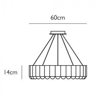 | Dimensions: | Shade: Ø60cm Shade Height: 14cm Min Drop Height: 55cm Max Drop Height: 280cm Ceiling Rose: Ø25cm |