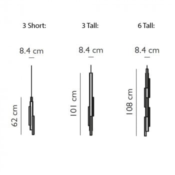 | Dimensions: | 3 Light - Short: Height: 62cm Width: 7.7cm Length: 8.4cm 3 Light - Tall: Height: 101cm Width: 7.7cm Length: 8.4cm 6 Light: Height: 108cm Width: 7.7cm Length: 8.4cm Cable Length: 300cm |