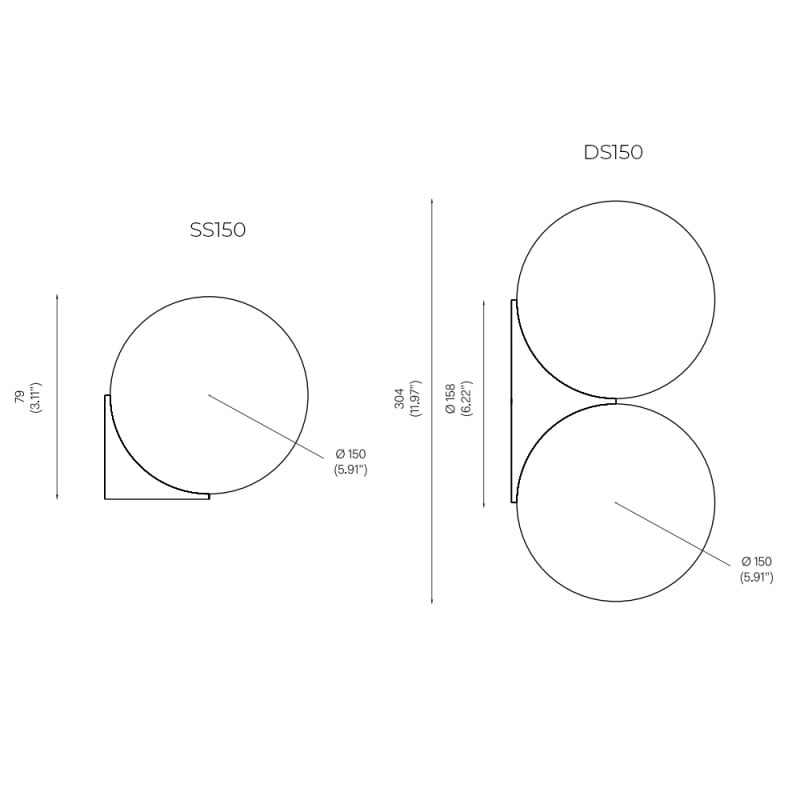 | Dimensions: | SS150: Shade: Ø15cm Height: 7.9cm DS150: Shade: Ø15cm Height: 30.4cm |